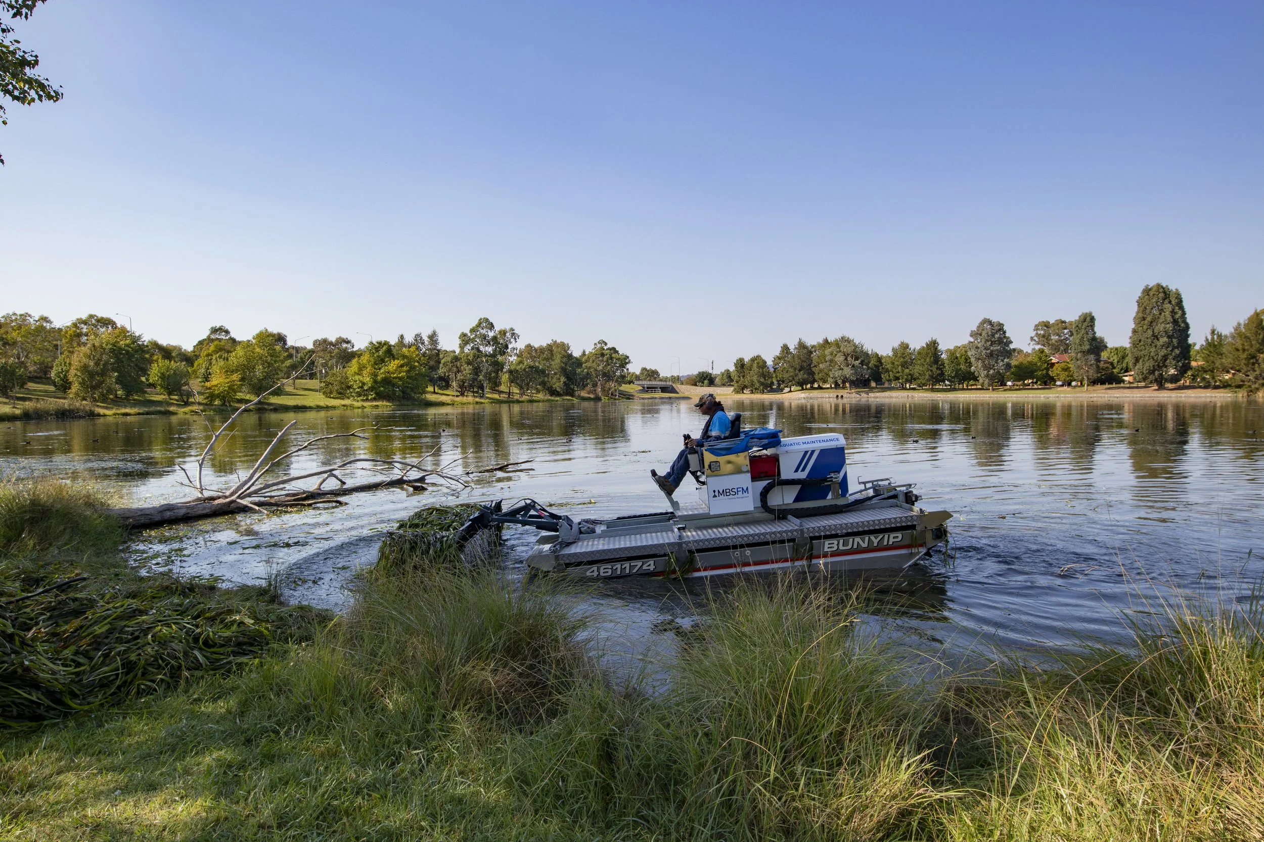 MBS FM delivers integrated aquatic weed control solutions, combining mechanical harvesting with targeted herbicide spraying. Our team is licensed and approved to conduct weed management in and around waterways in accordance with the Australian Pesticides and Veterinary Medicines Authority (APVMA).